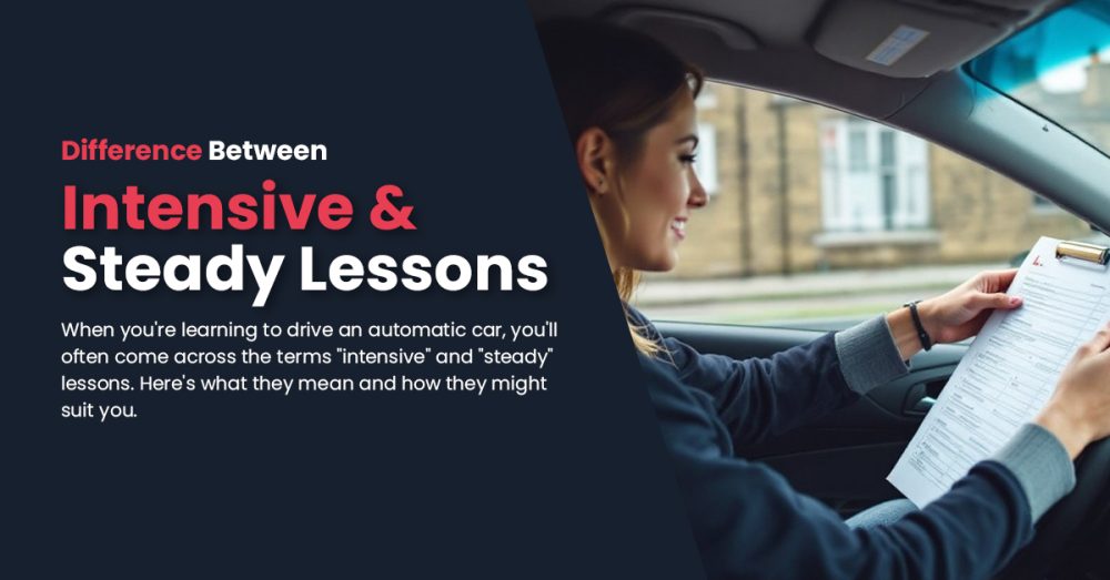 When you’re learning to drive an automatic car, you’ll often come across the terms “intensive” and “steady” lessons. Here’s what they mean and how they might suit you: